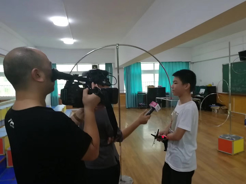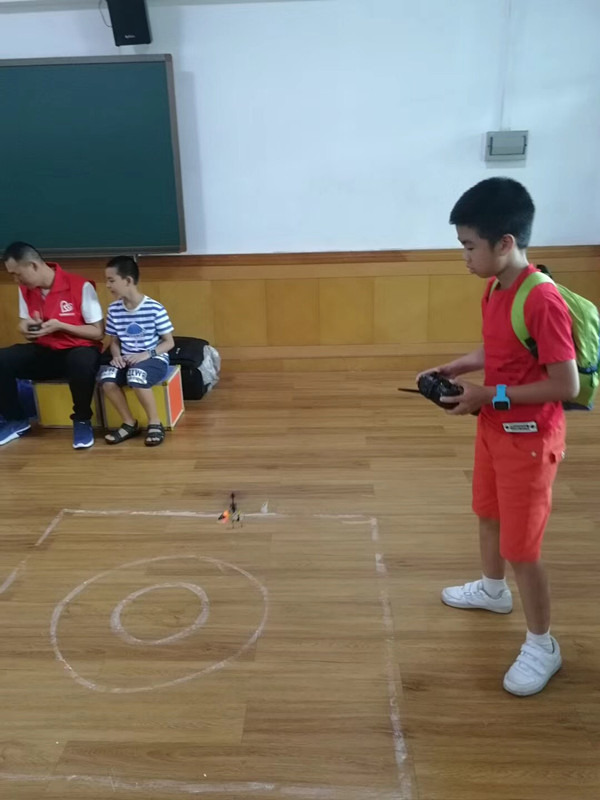 1)班肖铠基、六(3)班李正炀、六(7)班罗佳乐、丁薇嘉、张逸帆等五人组成,参加其中3项比赛。比赛当天的天气情况比较恶劣,阵雨持续不断,并出现了降温现象,但我校参赛同学仍然克服困难,取得了不错的成绩。在“天戈”遥控模型障碍赛项目中,我校包揽了前三奖项。其中,张逸帆同学在“天戈”遥控模型障碍赛中取得第一名的好成绩,并在美嘉欣无人机障碍赛中与市200多名选手角逐,荣获第三名。在比赛中,张逸帆同学的沉稳冷静以及熟练的操作技能感染了在场的每位人员。为此,电视台对他进行了专门采访并报道。