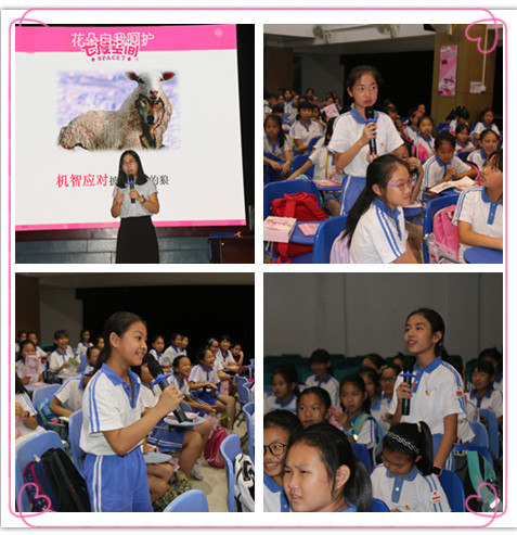 本次讲座从青春期女生的身体变化,个人卫生,注意事项和自我保护等几个内容切入,每一块内容,都有相应的视频动画加强学生的理解,扫除不必要的尴尬,并引用社会事实案例来教育女生们如何进行自我保护,增强学生的防御能力和警惕意识。讲师给学生们每人都赠送了一份青春期小手册,让学生能把这些知识载体带回家。